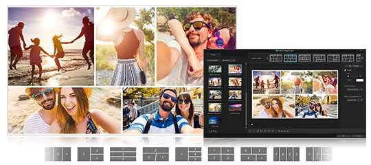 Combina hasta siete diferentes video clips en un sencillo collage personalizado completo con entradas animadas.