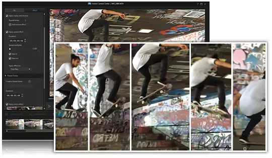 Haz de PowerDirector el siguiente accesorio para tu cámara de acción. El Centro Cámara de Acción combinado con estabilización de video de 360 grados en grado comercial te asegura que tus videos serán sólo pura acción.