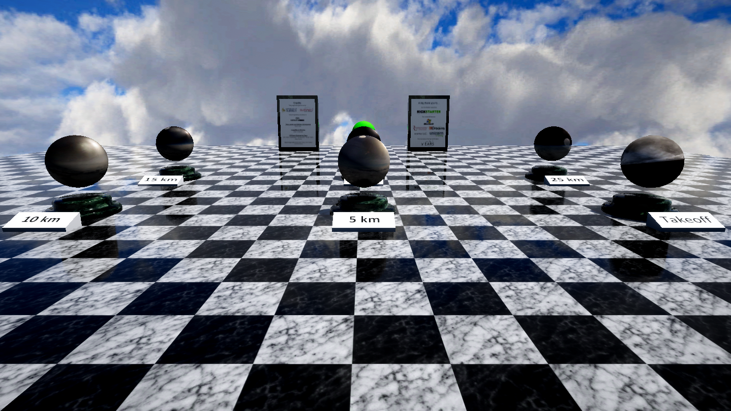 This is a made for VR experience that uses real world HD video footage to recreate the experience of flying to an altitude of 30 km above the surface of the earth on a floating platform. An immersive VR environment allows users to warp to set altitudes above the earth, and return to the ground by jumping off of the floating platform.