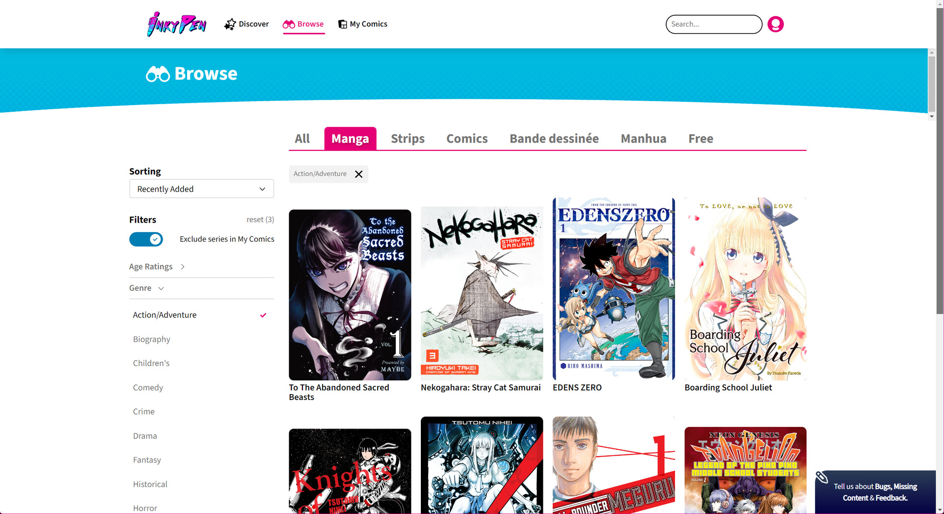 InkyPen is the all-you-can-read subscription service for Manga & Comics. Browse our content, read free samples, or subscribe to read all you want!