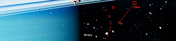 There is no speed limit in Helium Rain. You can fly at half a mile a second while aiming backwards. Aim for critical systems in order to disable ships, kill their crew or capture targets, and don't fly into asteroids.