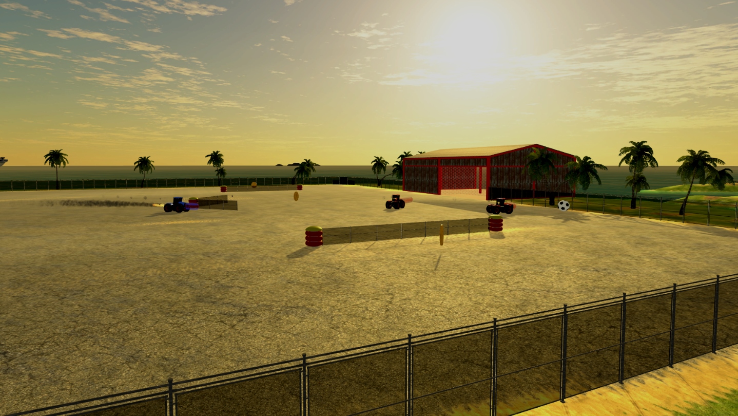 Tractorball is a physics based sports-action game and features four course layouts in five game worlds for a total of twenty levels, offering co-op and 2v2 multiplayer as well as unlockable single player leagues and tournaments. The XP based progression system starts you off easy in the minor leagues, but there is plenty of scope for more experienced players to hone their skills against the advanced AI in epic battles for the trophy. There is also a fully customizable single player mode that lets you select what kind of league or knockout tournament you want, the number of opposing teams, number of playoff rounds, difficulty and more.