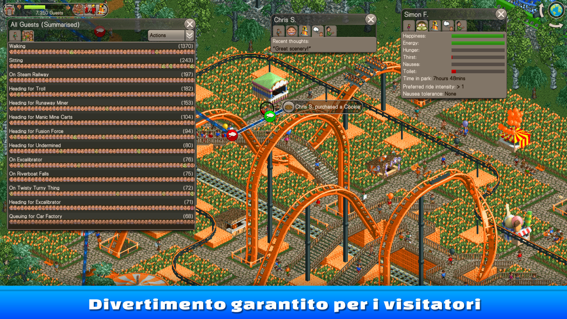 - Scenari dei parchi: attraversa i 95 scenari classici tratti da RollerCoaster Tycoon® e RollerCoaster Tycoon® 2.