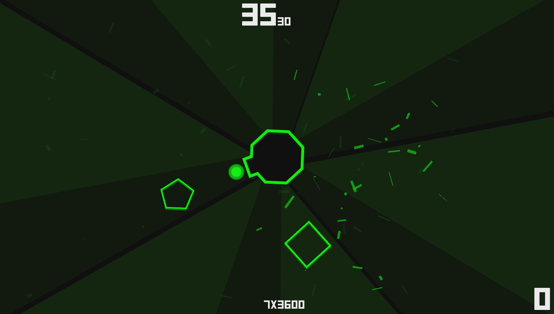 POLYGONEER is an arcade reflex based game. You should defend yourself from polygonal enemies that come from all sides, hitting them with the right color shot, one miss and its the end.