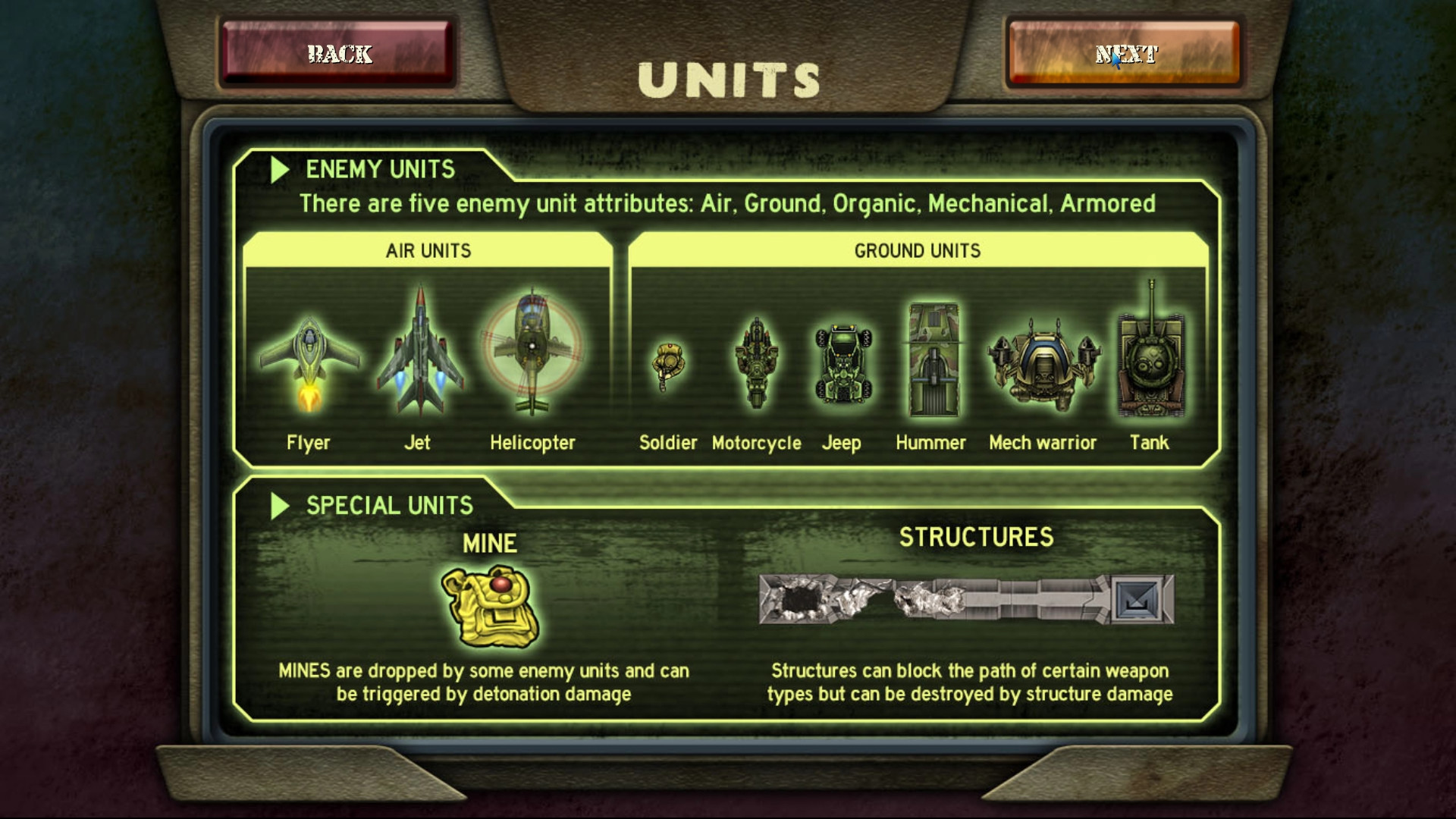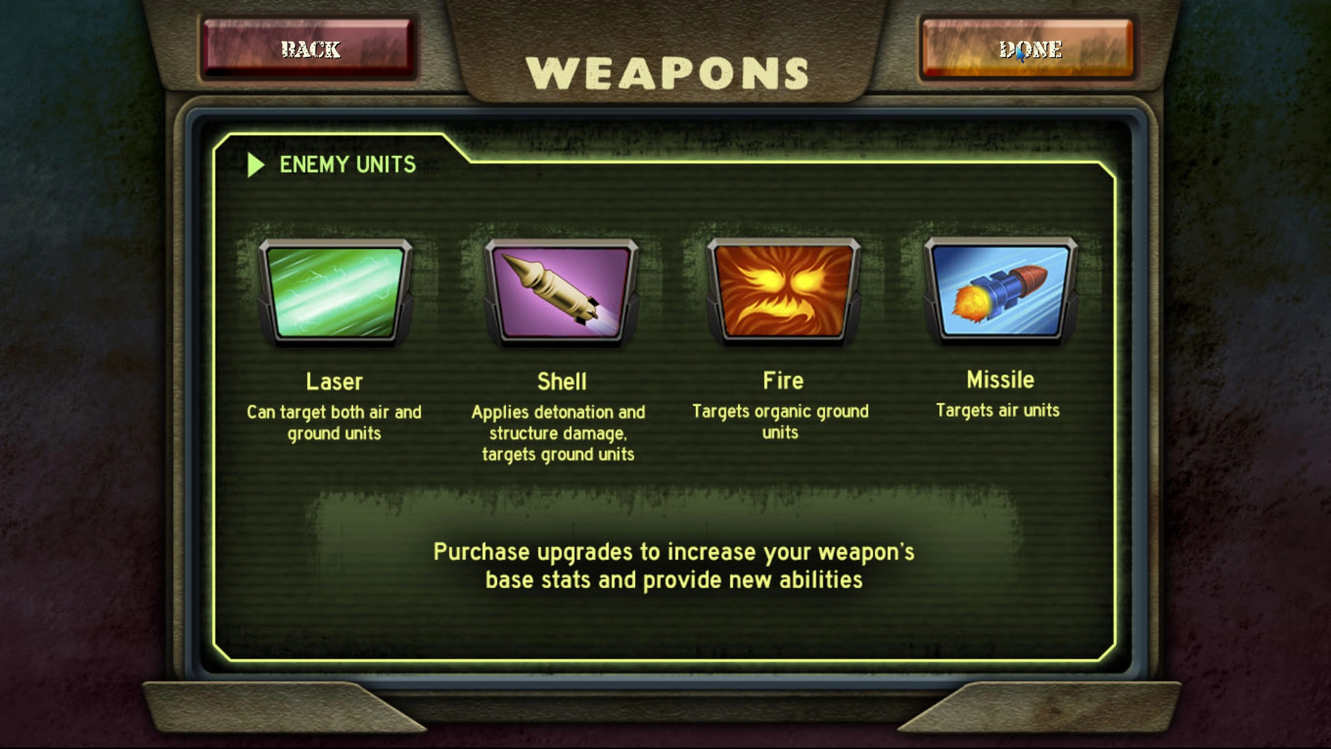 • 4 Weapons Types: Shell, Laser, Fire and Missiles
