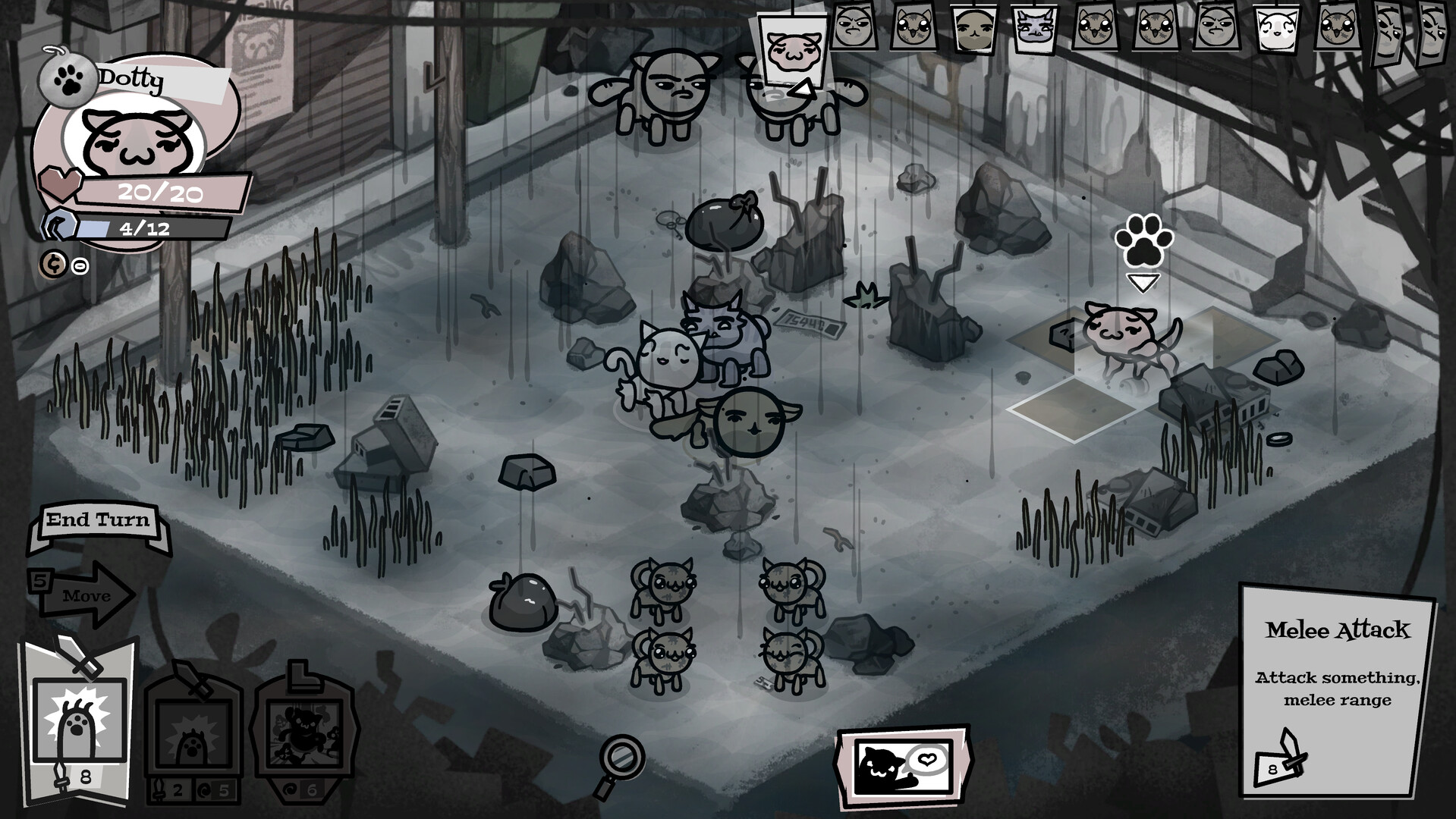 Welcome to Boon County, where each day you’ll assemble a team from your ever-growing house and outfit your cats with class-specific collars (Fighter, Tank, Mage, and  many more). Send your mutant feline squad clawing through adventures of turn-based battles that demand careful positioning, wild power combos, and environmental shenanigans.