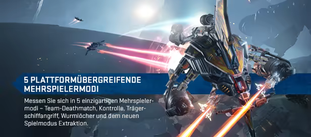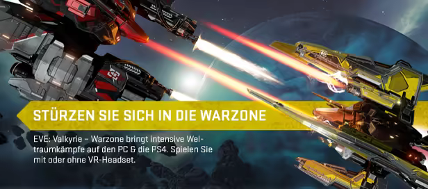 EVE: Valkyrie – Warzone ist ein First-Person-Weltraum-Shooter, der dich für schnelle, intensive und teambasierte Mehrspieler-Schlachten in das Cockpit holt