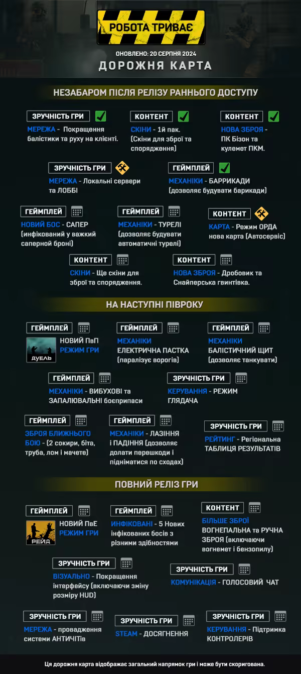 «Повна версія гри включатиме всі анонсовані режими гри, додаткові карти та нових ворогів. Гра буде відполірована, щоб забезпечити плавність ігрового процесу.»
