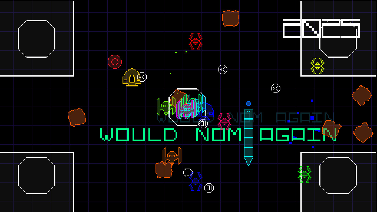 • Arcade - run through the 10 arenas, each with multiple waves of asteroids and aliens, with an arena guardian to defeat.