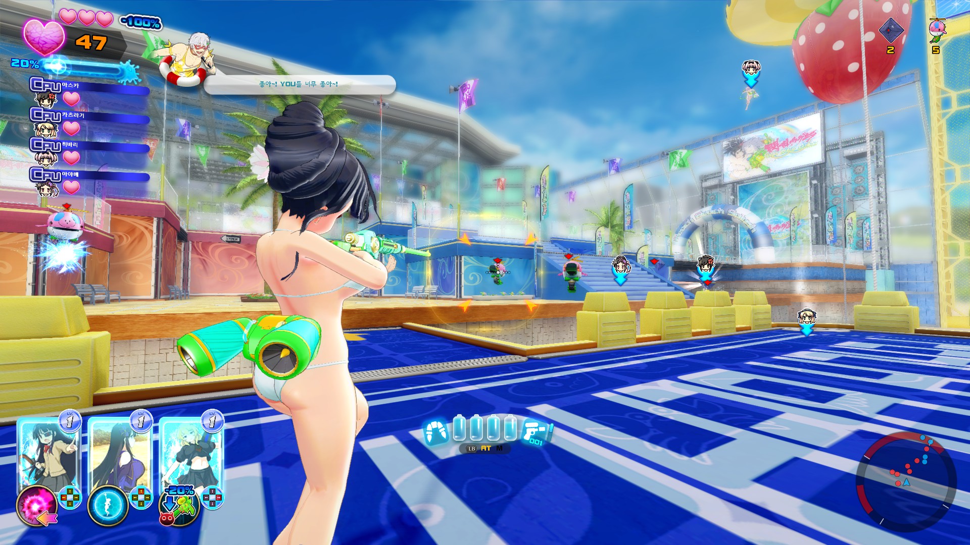 성능과 특성이 다른 10가지 워터건을 든 소녀들이 종횡무진하게 날아다닌다!