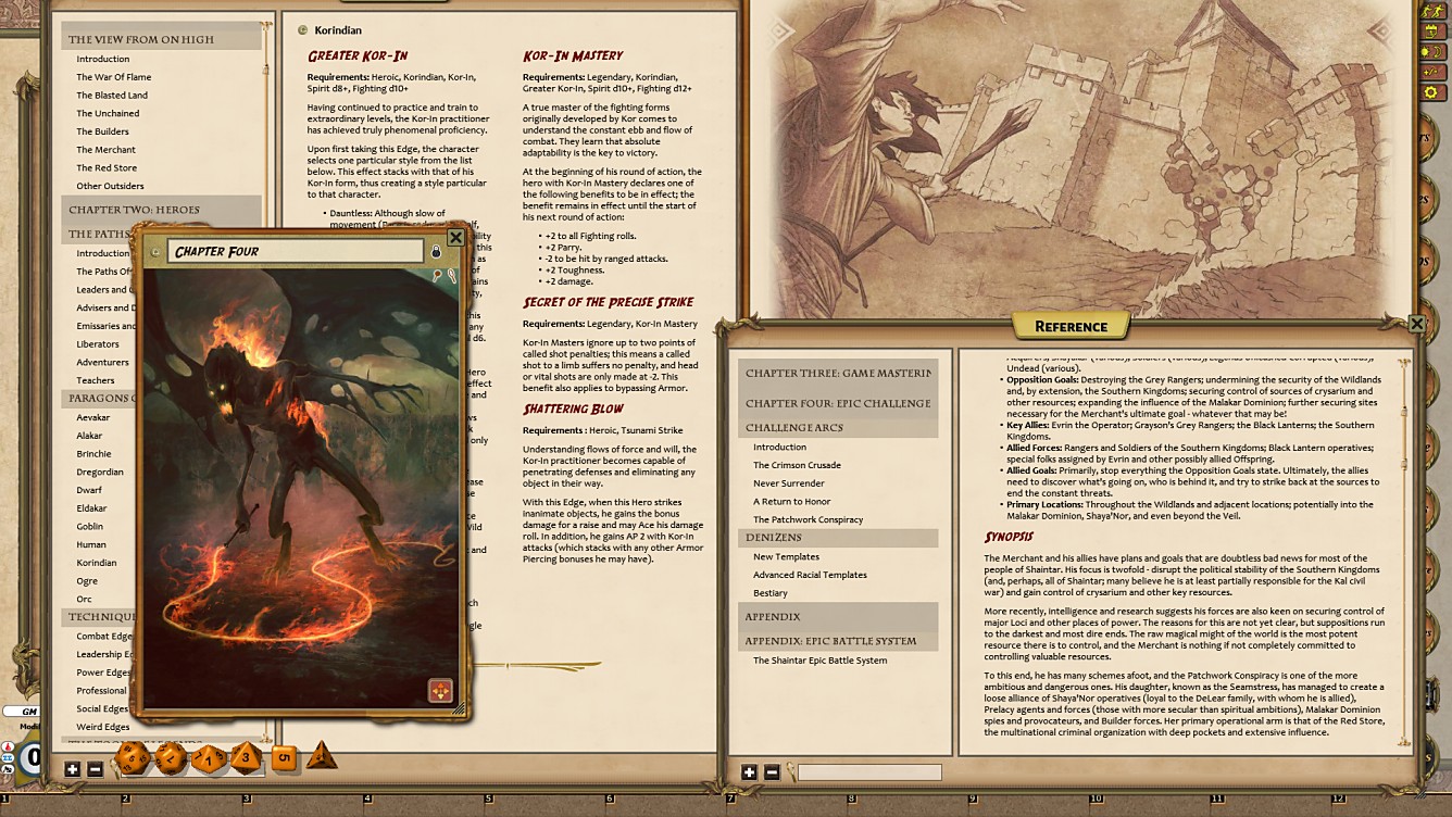 • The Denizens section, complete with truly terrifying versions of villains and monsters introduced in Legends Arise, as well as new foes. Included is a Dramatis Personae that features stats for very specific and dangerous people, including the Prelacy of Camon's Cardinal of Judgment, the Crystal Lord, and Harkor ki Doman, Emperor of the Kal himself!
