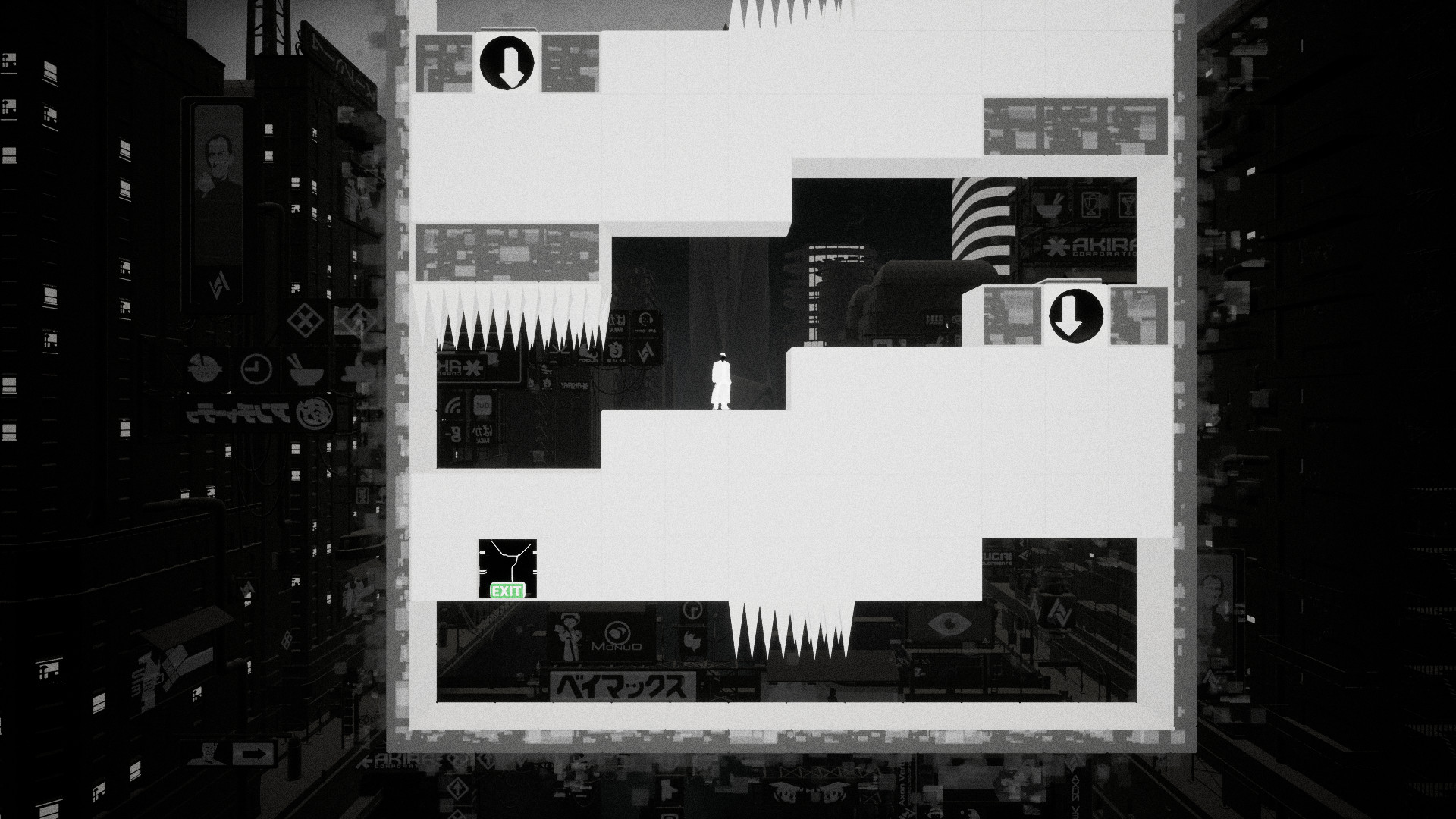 • Stylish black and white game world set in a cerebral cyber reality