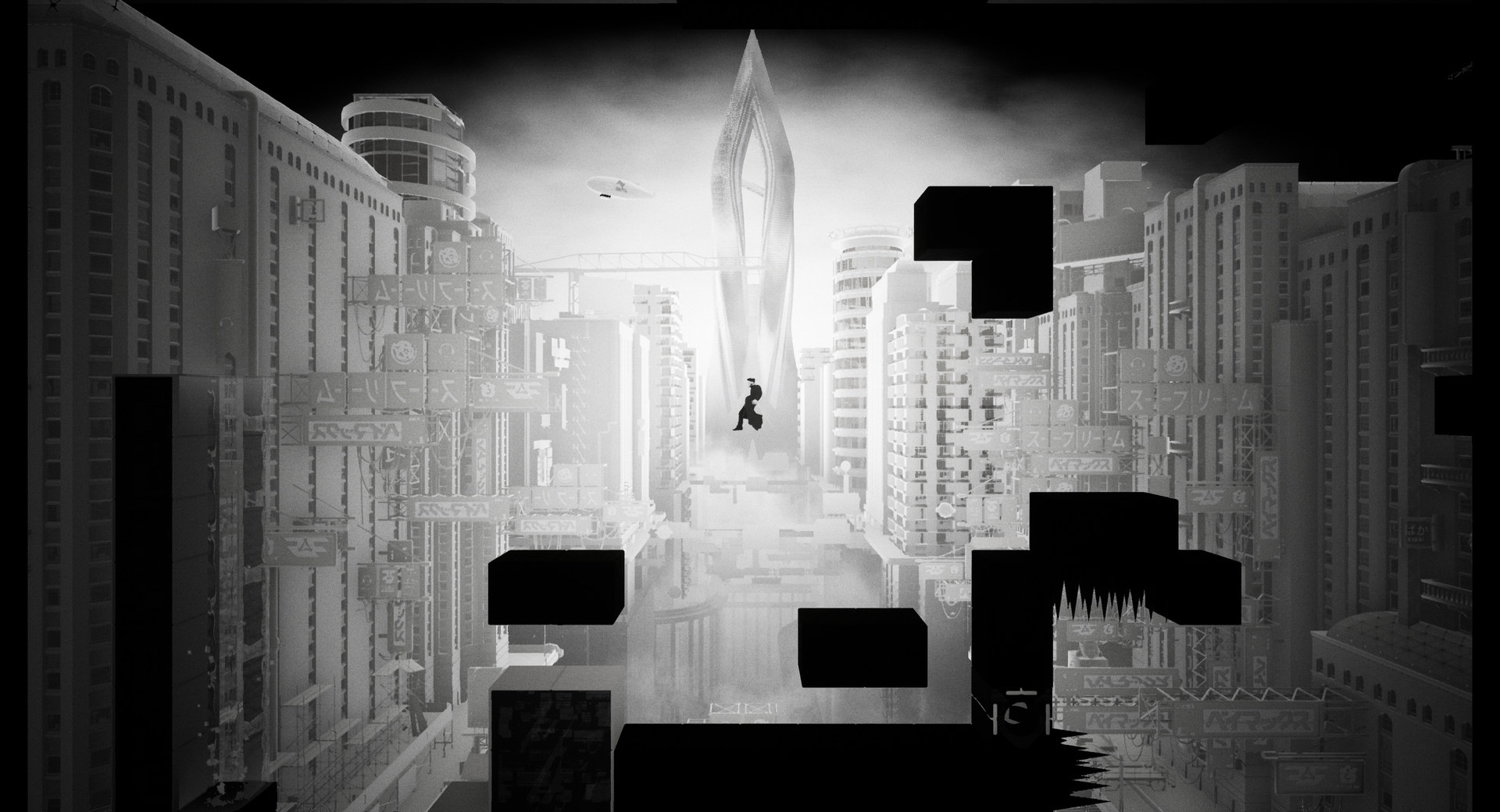 • Stylish black and white game world set in a cerebral cyber reality