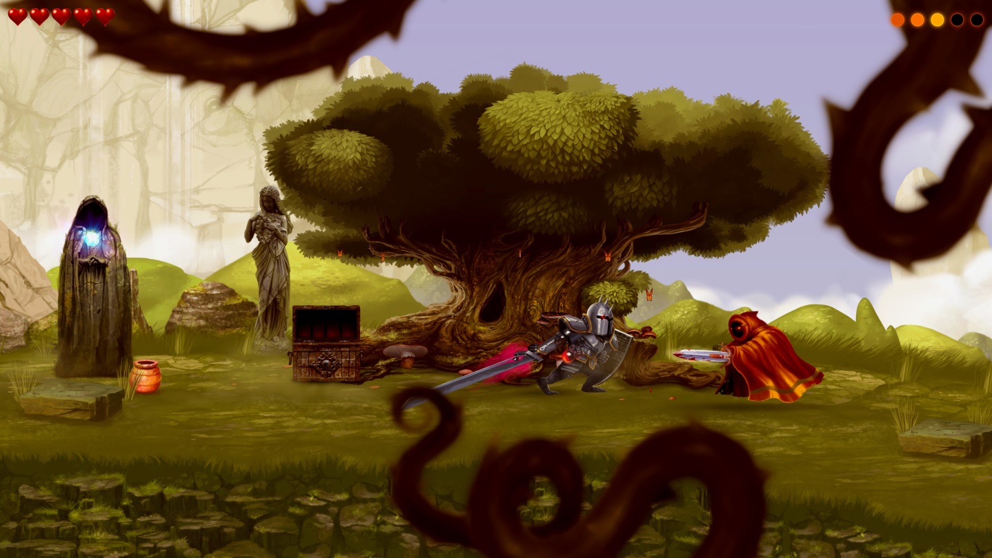 This game is a love letter to oldies like Ghost'n Goblins, Ghouls'n Ghosts, Black Tiger, Castlevania, Stormlord, Golden Axe and so many other games that shaped our hearts and still inspire us today. We also are deeply inspired by Studio Ghibli master pieces such as Spirited Away and Princess Mononoke.