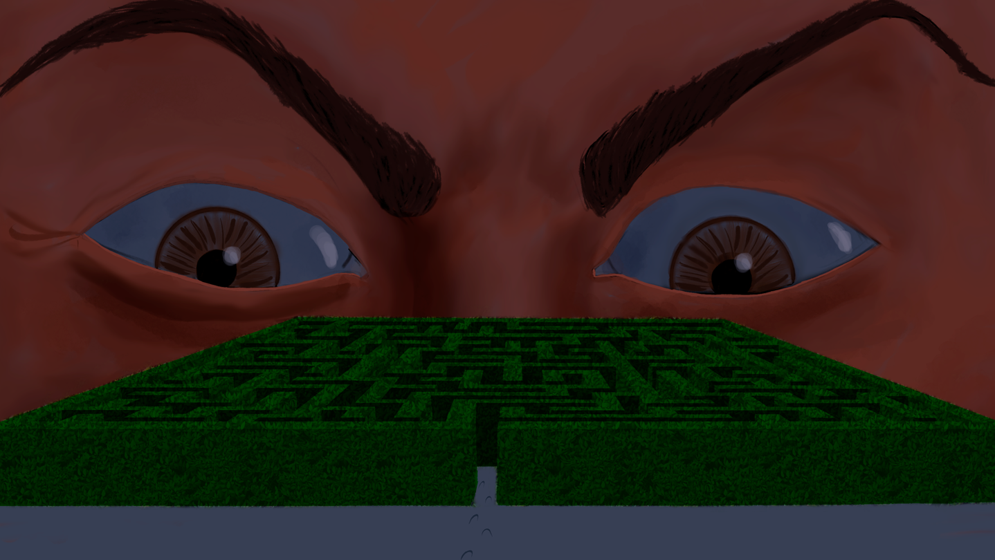 One winter night you find yourself being relentlessly pursued by a blood-thirsty murderer. You stumble upon a shadowy hedge maze and dash inside, thinking it might be your ticket to safety, but the killer is not deterred by the maze's labyrinthine twists and turns, and eagerly follows you in.