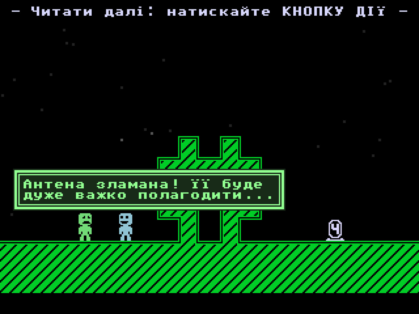 Рятуйте! Усі телепортувались, і їх розкидало хтозна-куди! І тепер саме ви, героїчний капітан Вірідіан, повинні знайти своїх друзів, повернути їх у безпеку й врятувати всесвіт!