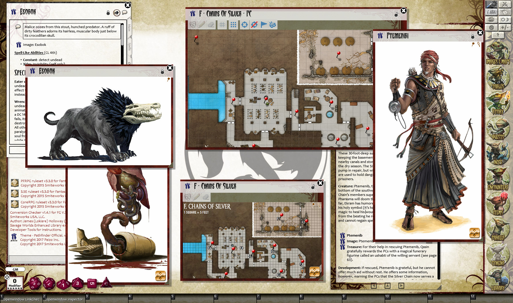 • Tokens for each encounter are all pre-placed in starting locations on the map. You can edit these on the fly.