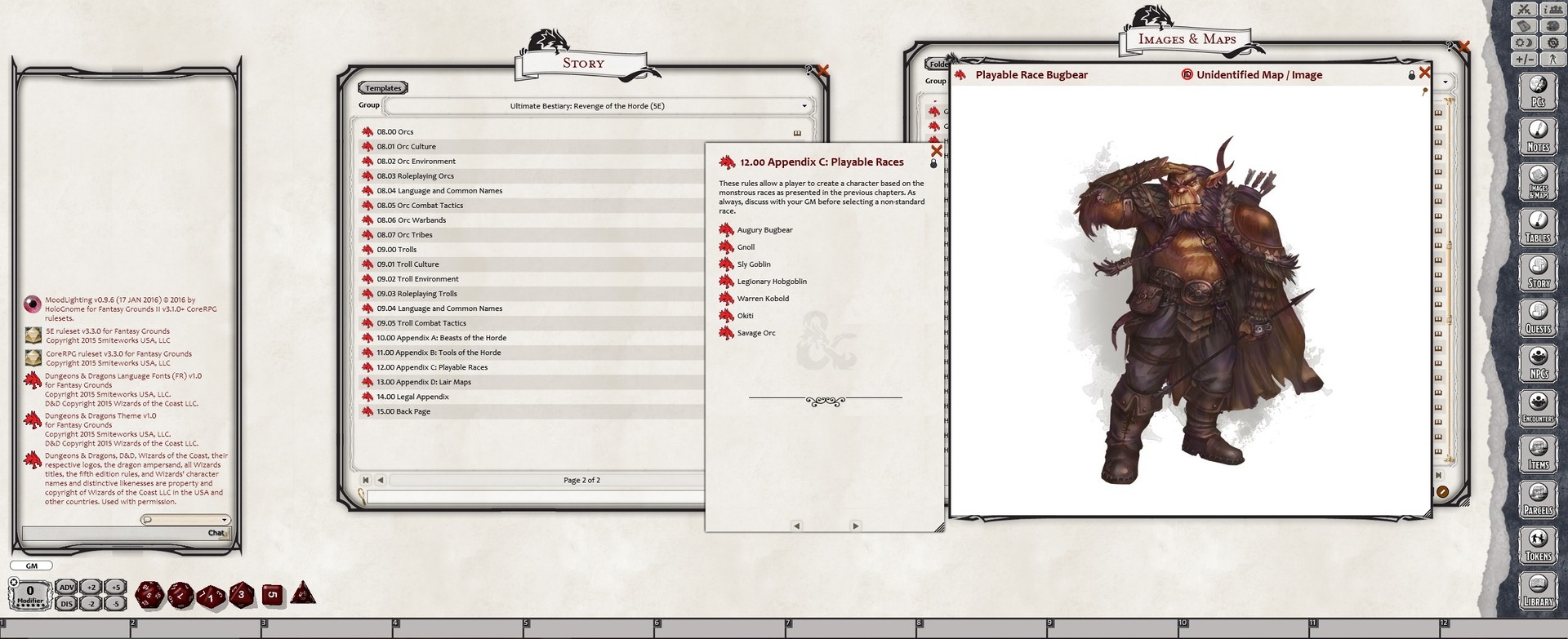 Requires: The free Fantasy Grounds virtual tabletop (VTT) software and the included 5E Compatible ruleset.