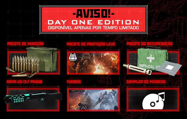 O jogo LEFT ALIVE - Day One Edition estará disponível apenas por tempo limitado e inclui o seguinte conteúdo bônus: