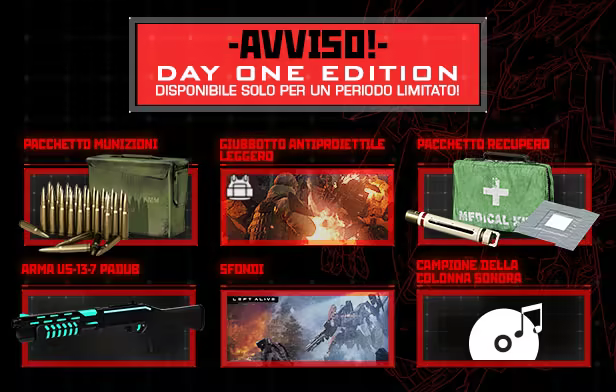 La Day One Edition di LEFT ALIVE sarà disponibile solo per un periodo limitato e includerà i contenuti bonus seguenti: