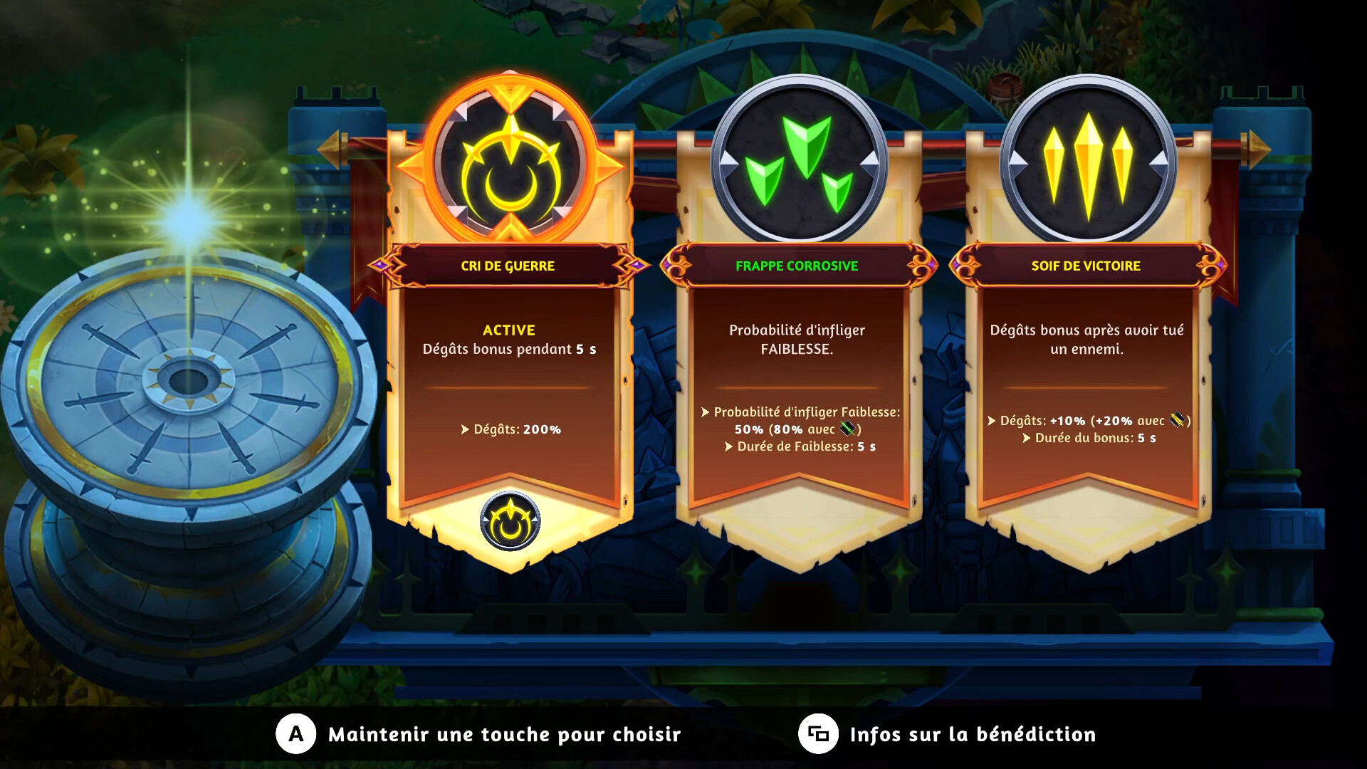 Renforcez les armes et compétences de vos chevaliers grâce à de puissants effets et plus de 100 capacités actives et passives.
