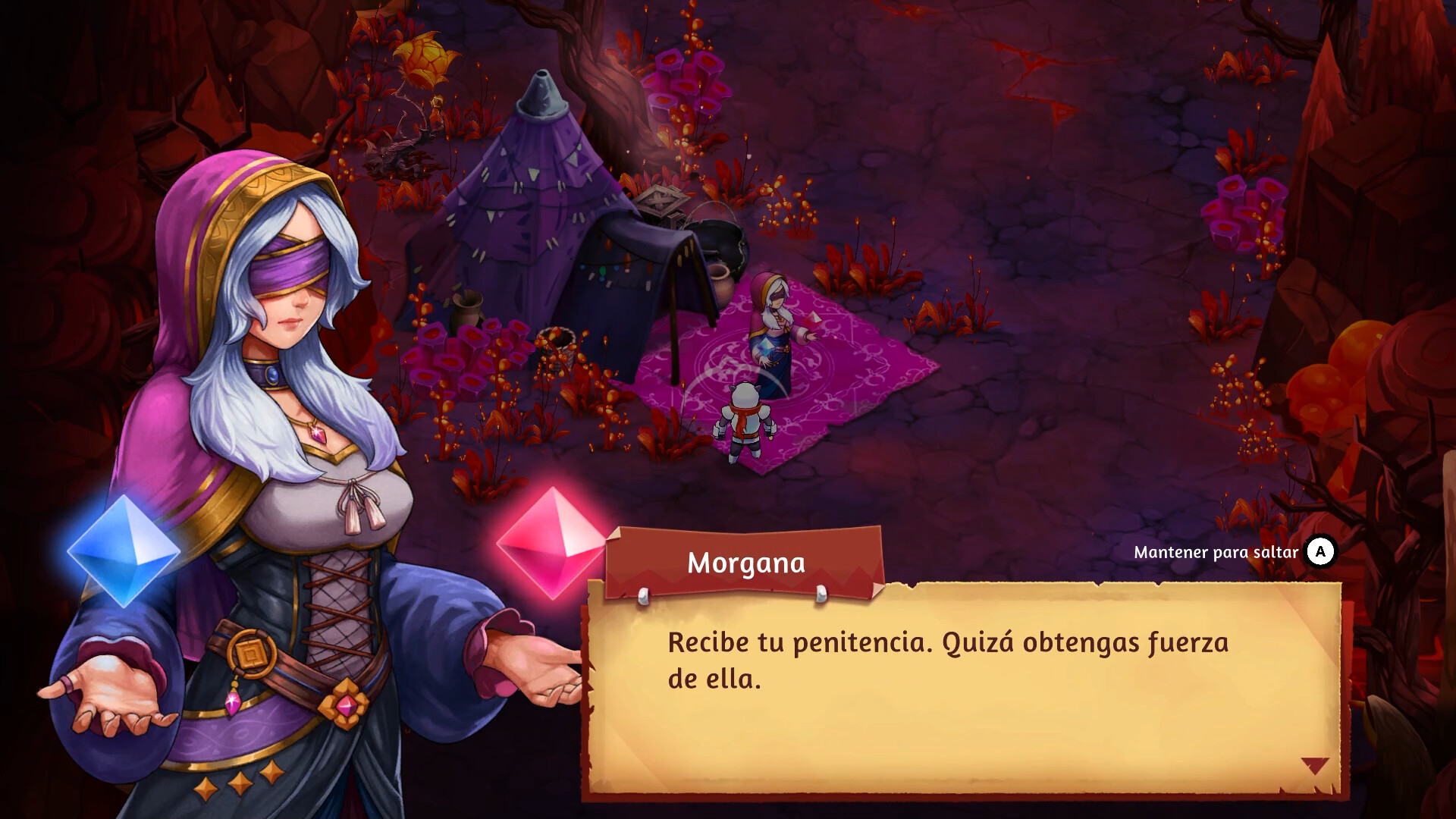 Explora ubicaciones procedimentales y conoce a PNJ únicos. Haz tratos con Assam, afronta el desafío del flautista de Pan y acepta los «regalitos» de Morgana.
