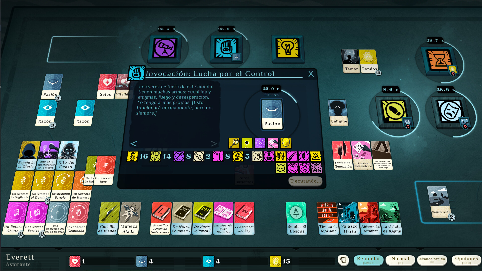 Cultist Simulator es un juego sobre catástrofes apocalípticas y apetitos desmedidos, obra de Alexis Kennedy, creador de Fallen London y Sunless Sea. En este juego, ambientado en la década de 1920, buscarás misterios profanos entre dioses ocultos e Historias Secretas. Quizá persigas conocimientos, poder, belleza o venganza. Quizá tan solo quieras ver los colores bajo la piel del mundo.