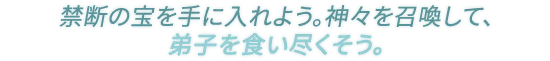 • 赤い聖杯、または魔女と双子の片割れ、日々の鍛造に身を捧げるカルト教団を設立。信者を集め、弟子へと昇格させて泥棒や研究者、手下として利用できる。弟子を使って食欲を満たしたり、弟子で食欲を満たしたりすることも可能。