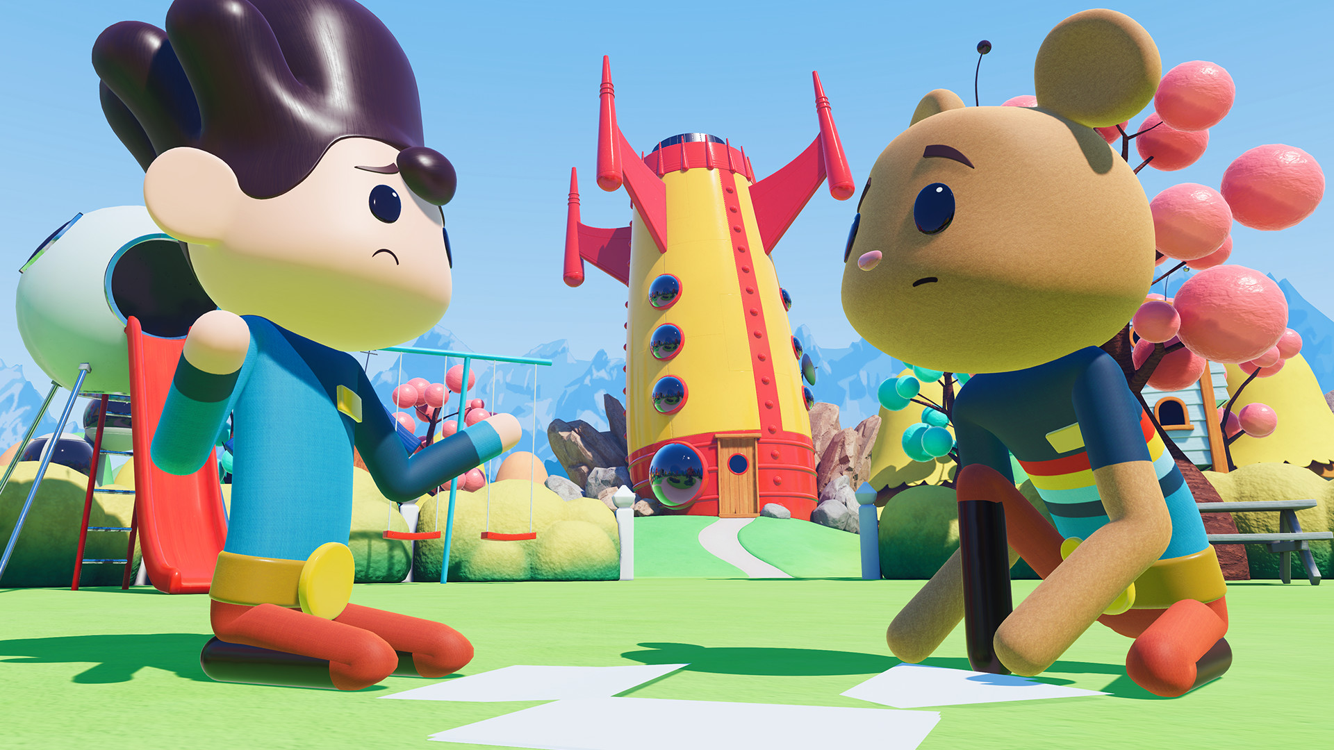 MORGAN LIVES IN A ROCKET HOUSE is an animated kids show about Morgan, a kid marooned on an alien planet light years from Earth. It follows the adventures of Morgan and his best friend Elliot as they play and have fun in the happy little village Morgan’s ship crashed into many years ago.