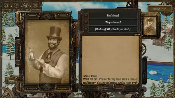 You play as Captain Jebediah Rockwell. As the game's story unfolds you'll uncover his mysterious past and determine his destiny. Inspired by the story rich CRPGs of old, Age of Grit features deep, character-driven dialog. You'll chin wag with countless unique and engaging characters. Conversate with the townsfolk to hear the latest gossip, fetch yerself a swell gig, or...if yer chat goes south things might end with a duel in the sky!