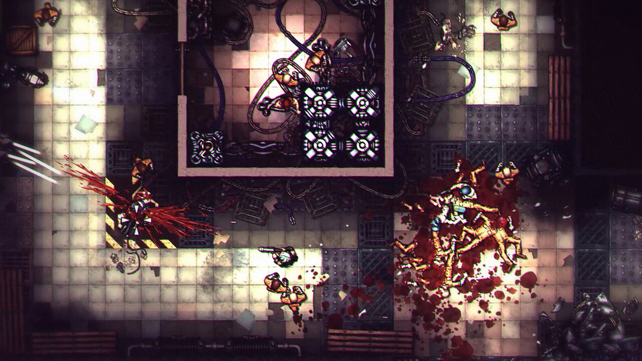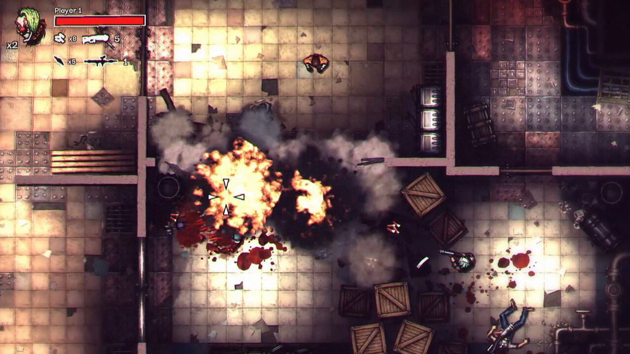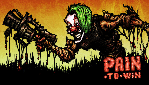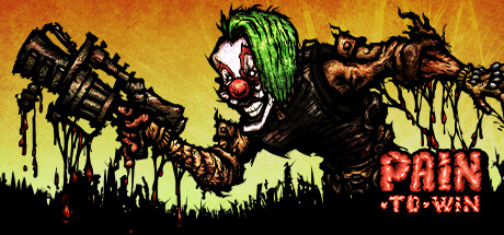 PAIN-TO-WIN is a top-down action-shooter filled with maniacs, clowns, severed limbs, level destructions, ricochet shots, explosive weaponry, and the cutting flesh disc-saw, set in a dark and gritty new world.