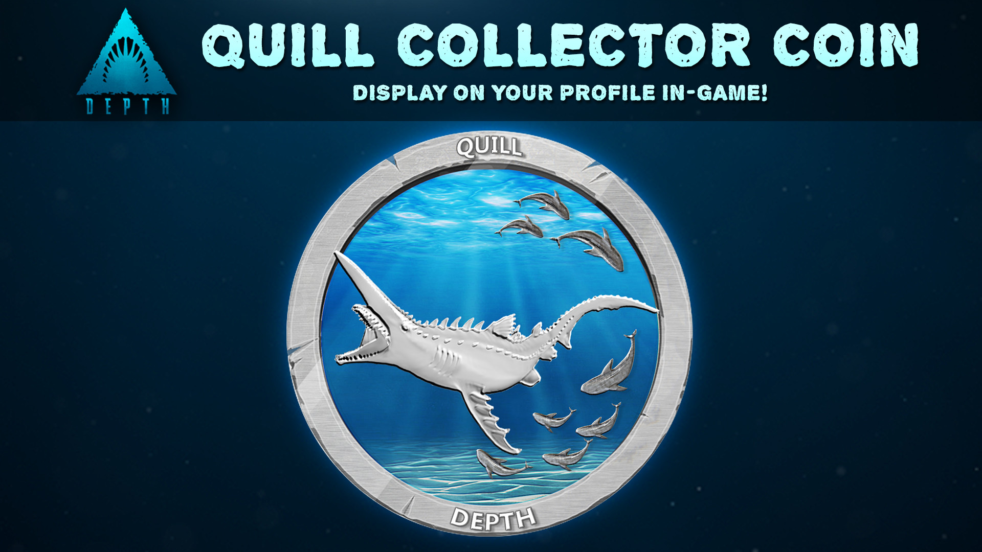 Fight with the ferocity of an all new Abyssal skin for the Goblin Shark, Quill! The Quill DLC also includes a special Collector Coin for display in-game. Quill is a dangerous member of the Mitsukurinidae family and was discovered by a deep-sea exploration robot off the coast of Japan. Unfortunately the robot met its end and earned Quill her name when she ran one of her fearsome horned spikes directly through the machine.
