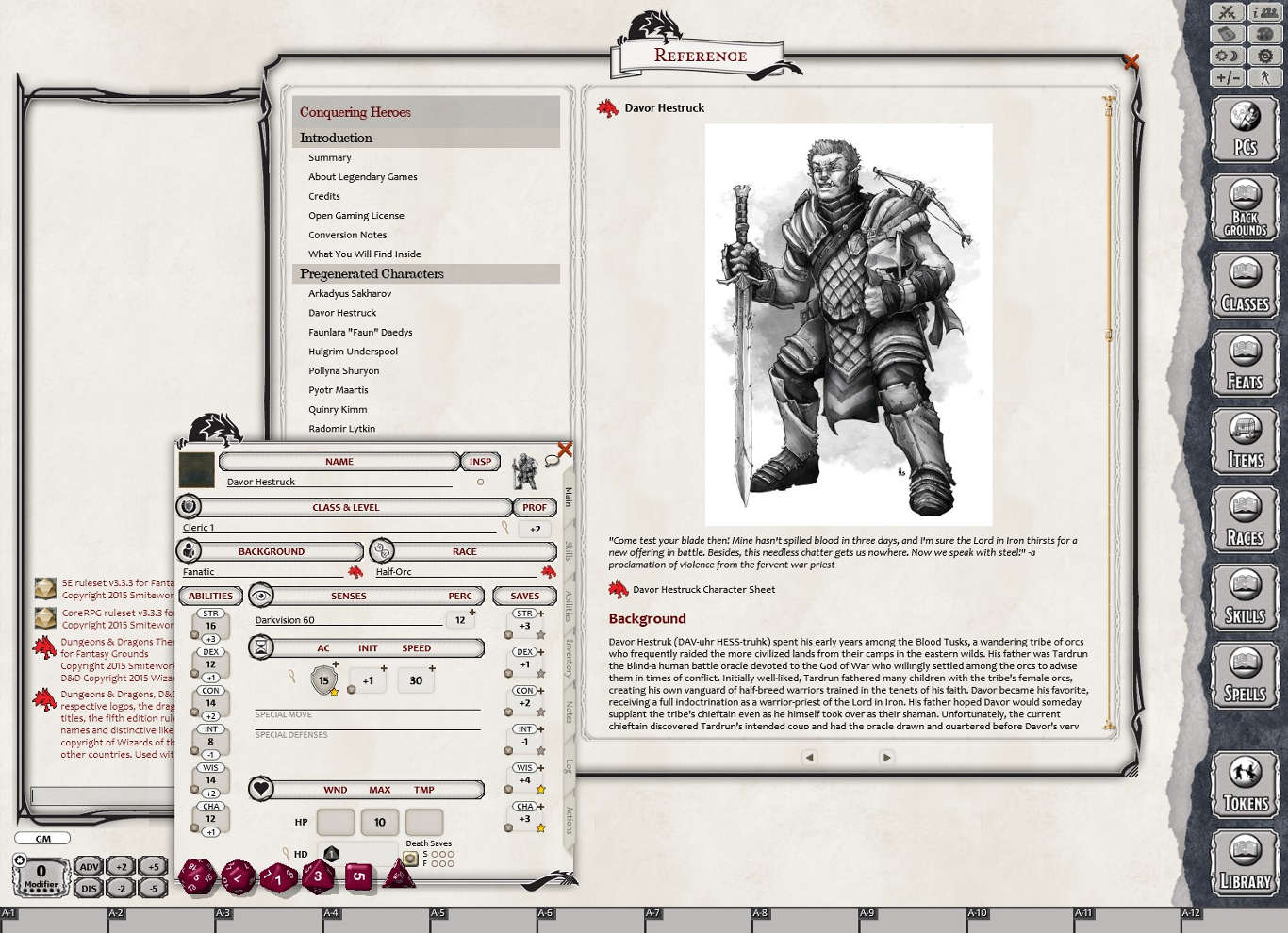 Requirements: The free Fantasy Grounds virtual tabletop (VTT) software and the included 5E ruleset.