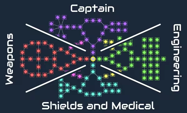 This vast circular skill tree allows you to specialise while still staying flexible. A crew member focusing on weapons might choose to change their path and develop expertise in shields while retaining their progress.