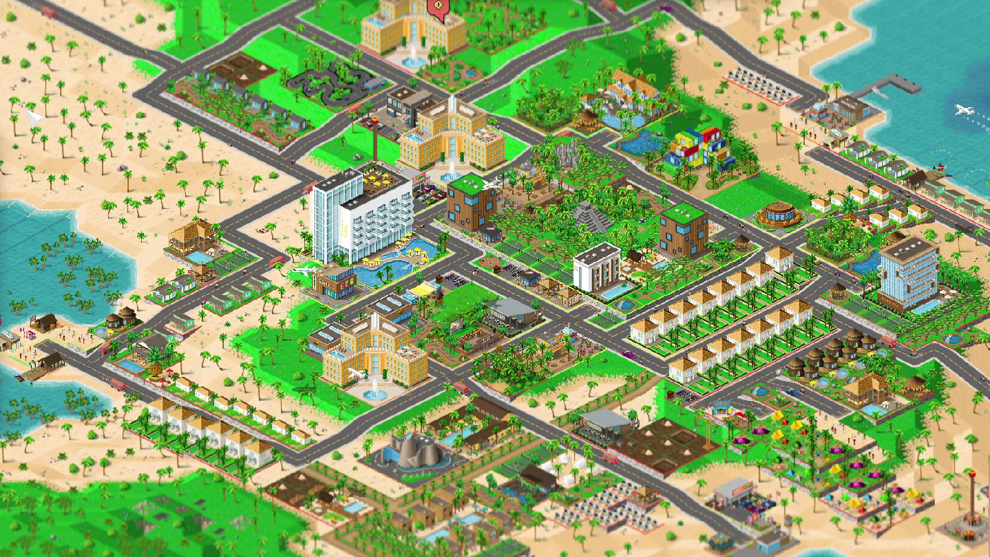 Buy new buildings from a wide range of building types. From houses and hotels to restaurants, stores, parks attractions etc. Here you can distinguish between mass tourists and luxury tourists. Buildings with luxury tourists earn you more money, but are expensive and have a lower capacity. Also note that mass tourists and luxury tourists have different preferences as to which buildings are nearby.