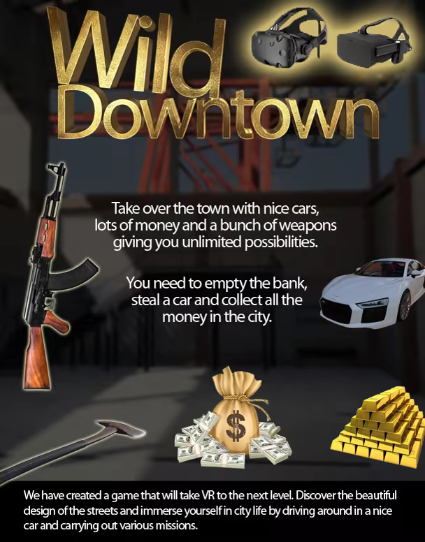 The largest open world VR city. Experience total freedom and the pure joy of gaming while testing the limits of virtual reality. Wild Downtown is a VR game where you can dominate the whole city.