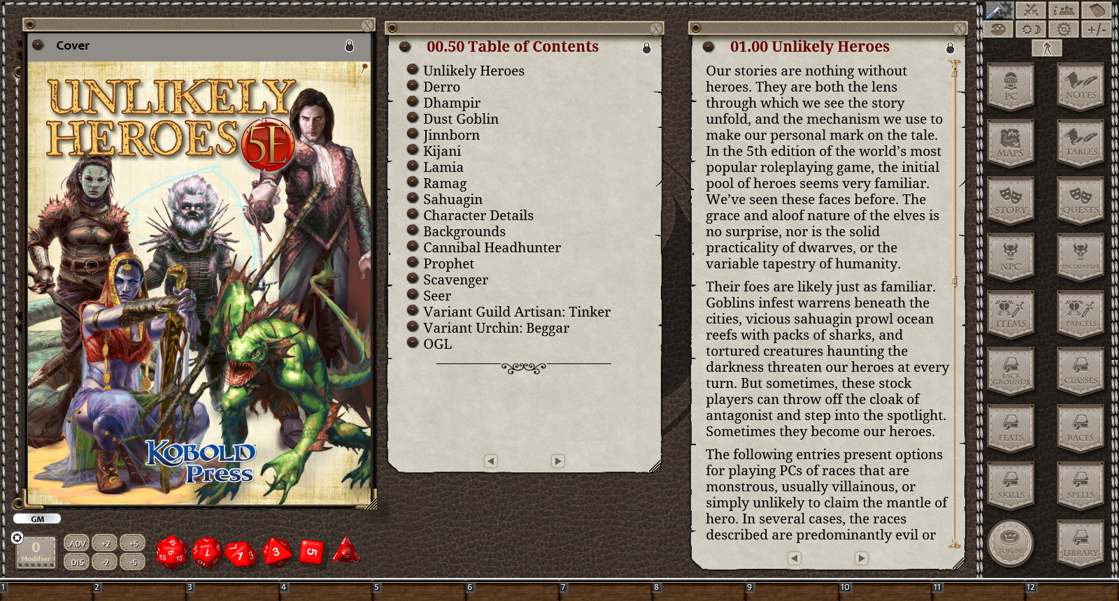 Requires: The free Fantasy Grounds virtual tabletop (VTT) software and the included 5E Compatible ruleset.