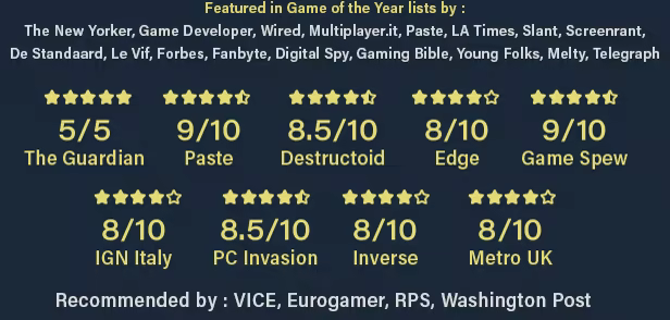 “The biggest compliment I can give this game is that it's truly like nothing else I've played before, and it's incredibly focused and dedicated to its creative vision and its theme. If you're looking for something different, a gentle form of experimentation in a beautiful package, I can't recommend Genesis Noir more.”