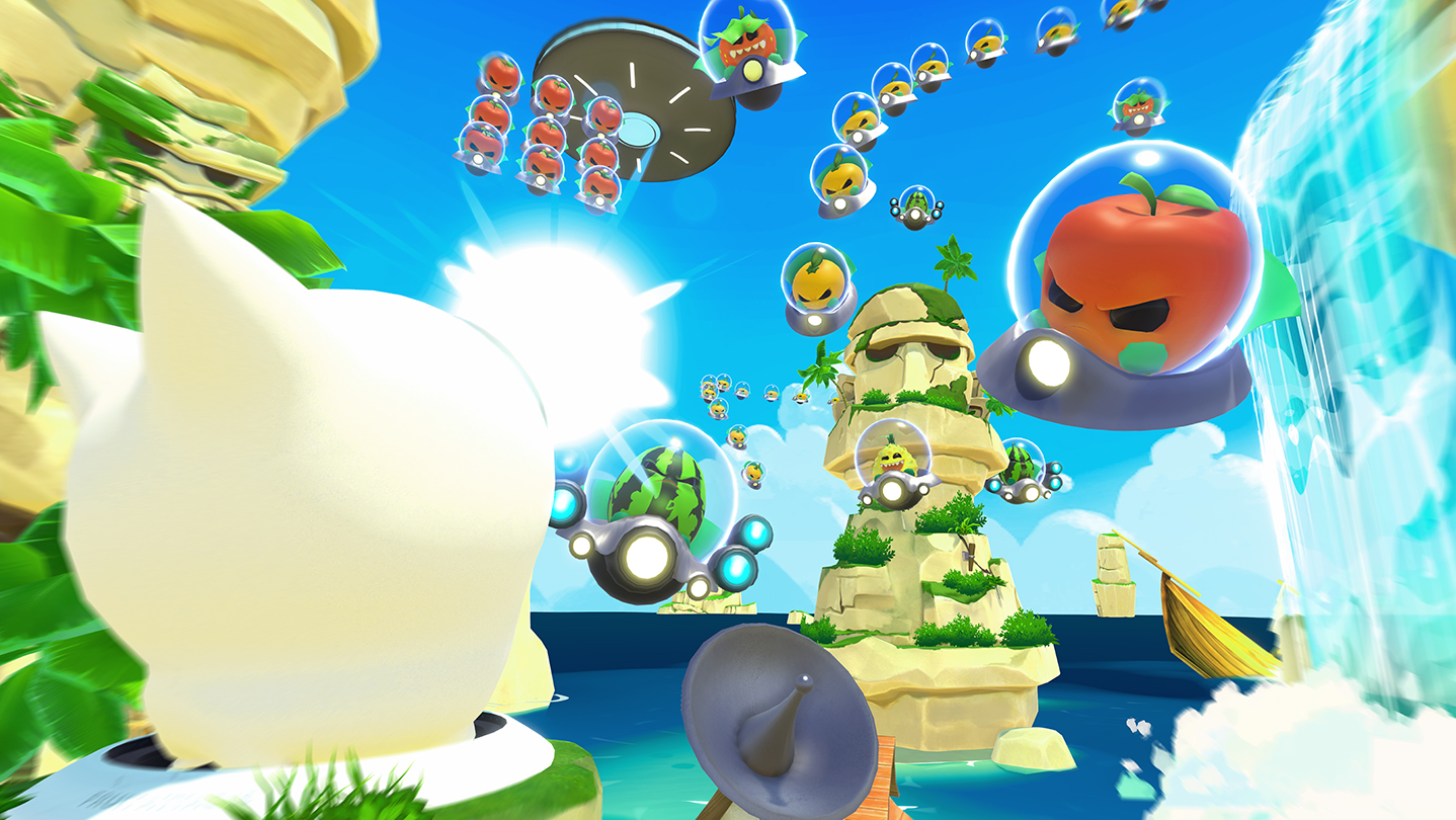 The casual shooter has been reborn as a VR game that everyone can enjoy. Take on the role of a SATI robot to battle and defeat fruity fresh enemies invading the Earth!
