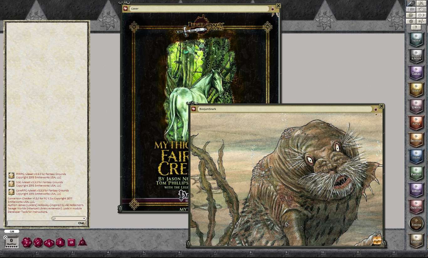 Requirements: The free Fantasy Grounds virtual tabletop (VTT) software and the included Pathfinder ruleset.