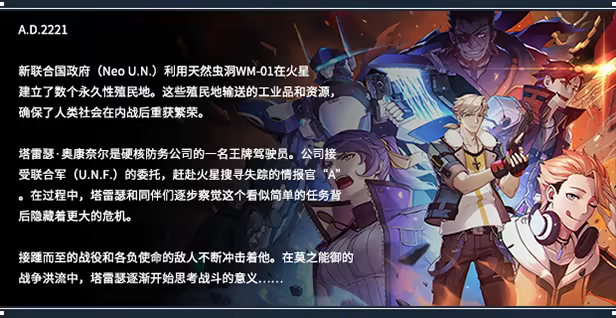 戰役模式含8個章節共計18關。隨著劇情的深入,你能在礦坑、水下、市街、宇宙等各種類型的場景中,遭遇超過50種設計各异、細節豐富的敵方機甲,在某些關卡裏玩家甚至可以脫離機甲深入敵後。