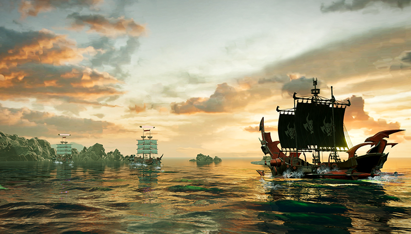 Player in story model will follow the story of treasure hunting including searching maps, complete missions and defeat the monsters or privates in game to get loot and rewards.