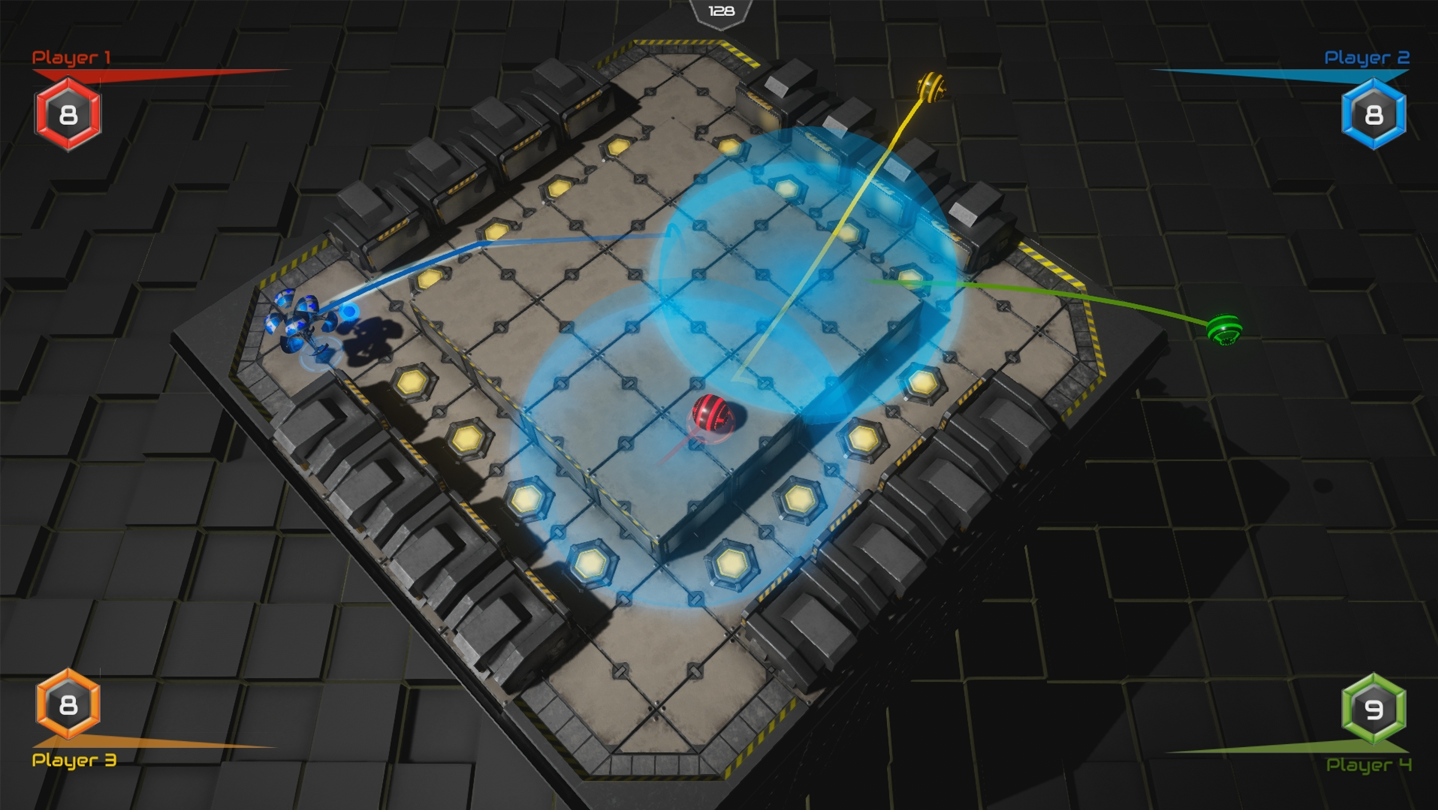 Super Dashmatch is a one-screen Multiplayer Party Game, in which players control fighting orbs on a shape-shifting arena. Players have to dash their opponents out of the game to win. Super Dashmatch is a local and online multiplayer game for 2 to 4 players.