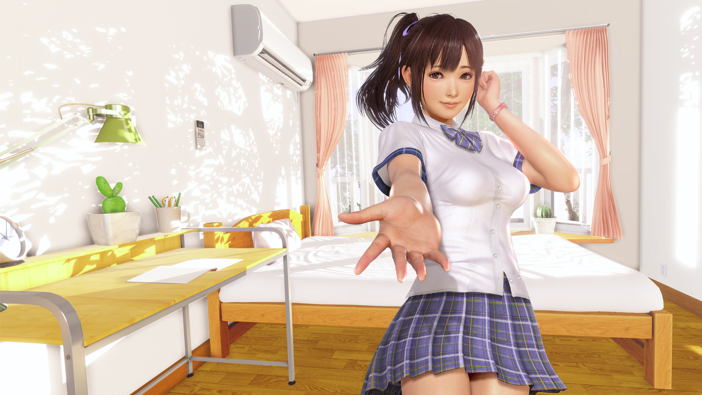 In VR Kanojo, you can hang out with the lovely girl-next-door, Sakura Yuuhi. You'll practically feel her breath on your cheek and the warmth of her fingers on your arm as you laugh and talk the day away. Better yet, VR controllers simulate your hands in-game, letting you interact with her more directly. Just imagine all the possibilities!