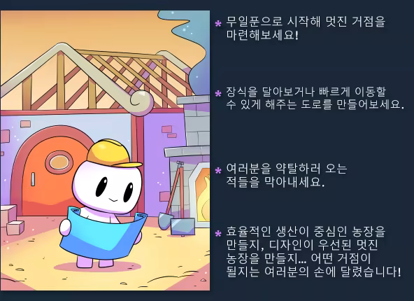 "한 번 플레이하면 멈출 수 없는" 기발하면서도 유명한 방치형 게임이 왔습니다! 무일푼으로 시작하여 모험하고, 제작하고, 수집하고, 관리하고, 비밀을 찾아가며 당신만의 보금자리를 건설하세요! 모험이 끝나면 새로운 토지를 구입해 또 다른 모험을 떠나세요!