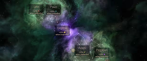 The first player to control three systems on a constellation will “own” this constellation, granting specific resource bonuses and showing everyone who’s boss around here.