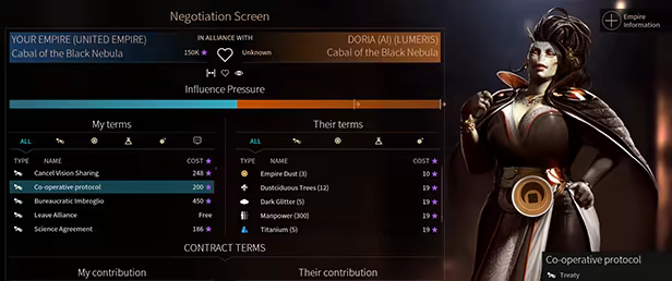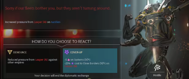 The pressure feature has been reworked, to offer a more transparent and clear interface, so players can better see how it is affecting their relationships with neighboring empires.