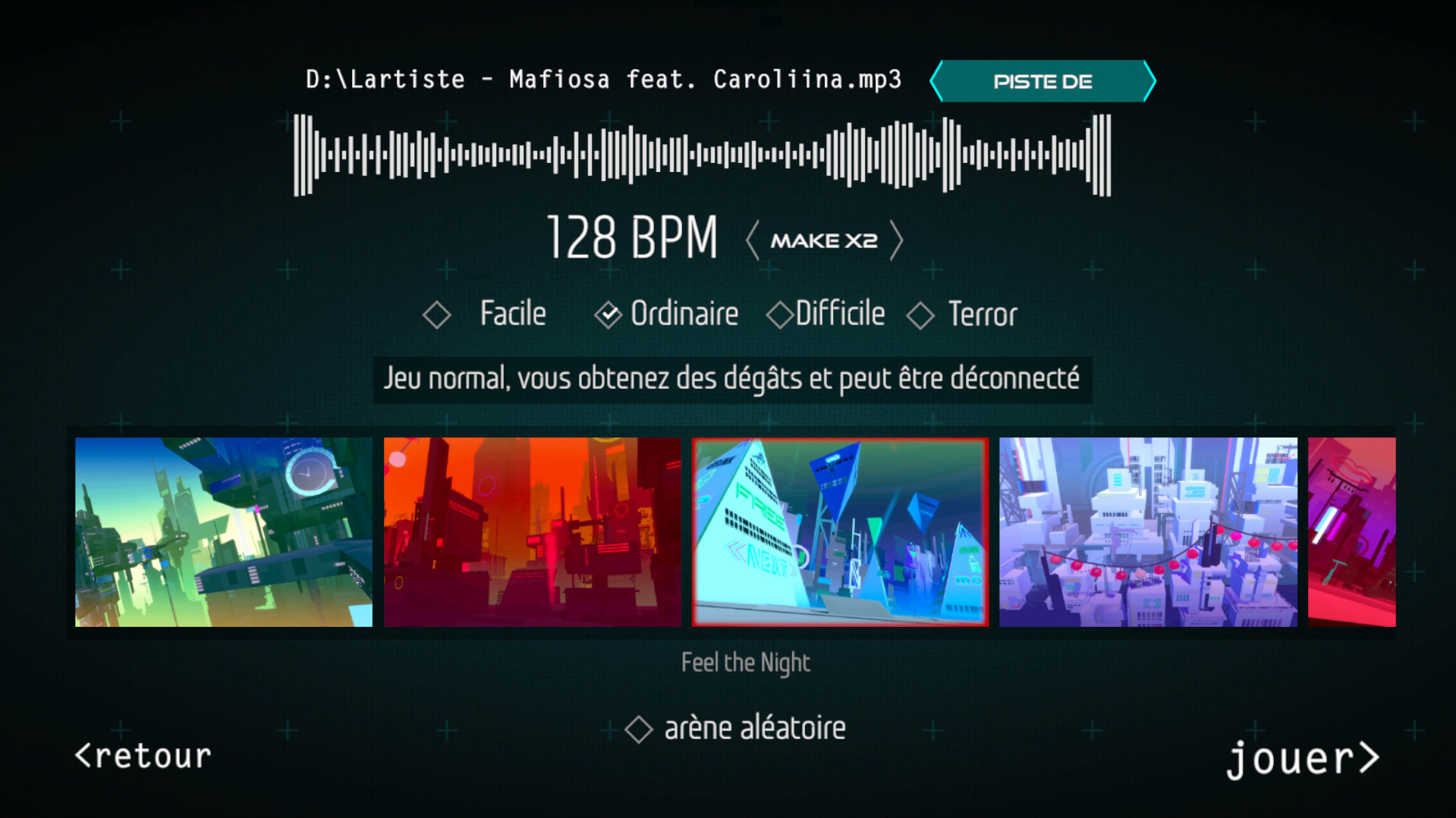 • Play to the rhythm of your own music library! Upload the MP3 track of your choice and the game will analyze the music to prepare adapted gameplay in real-time.