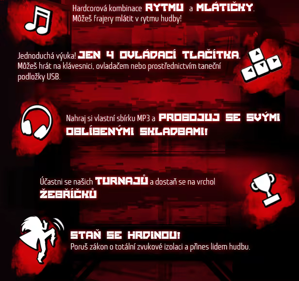 TERRORHYTHM - hudbou ovládaná akční mlátička. Následuj rytmus hudby a poraz bezpečnostní systémy, které do společnosti nepustí jakýkoli zvuk. Nahraj si vlastní sbírku MP3 a probojuj se svými oblíbenými skladbami!
