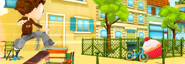 Enjoy skating through such iconic environments as the City, the School, Adventure Land or the Skate-park, in a fun and easy-to-get platformer.
